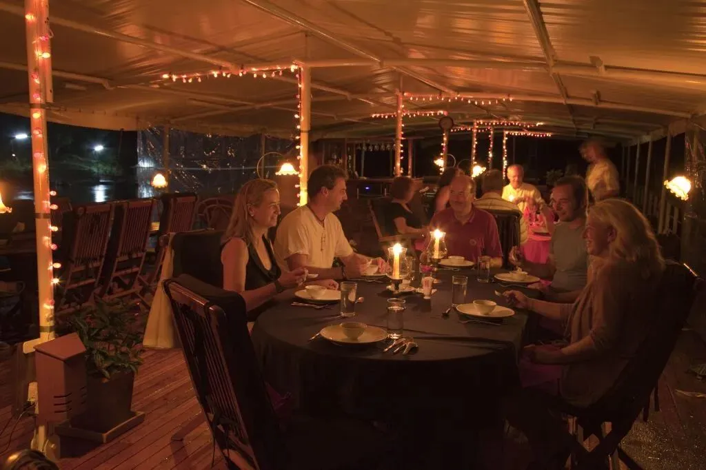 白天在岸上探索归来,可以躺在阳光甲板的躺椅上,吹着晚风看两岸风景缓缓后退,傍晚时分,船上会供应精致的单点晚餐,搭配泰式鸡尾酒,在星空下享受舌尖上的泰国。