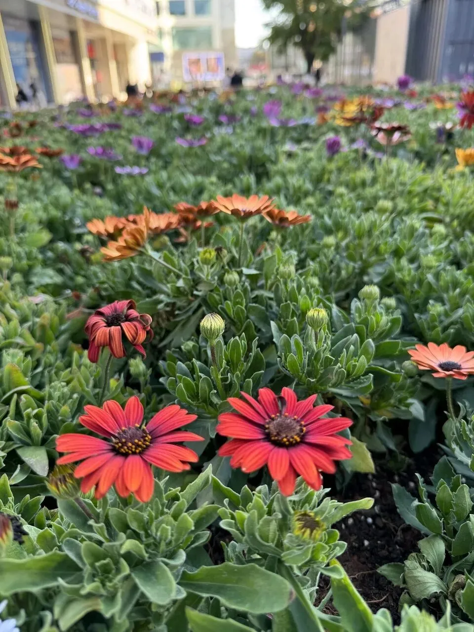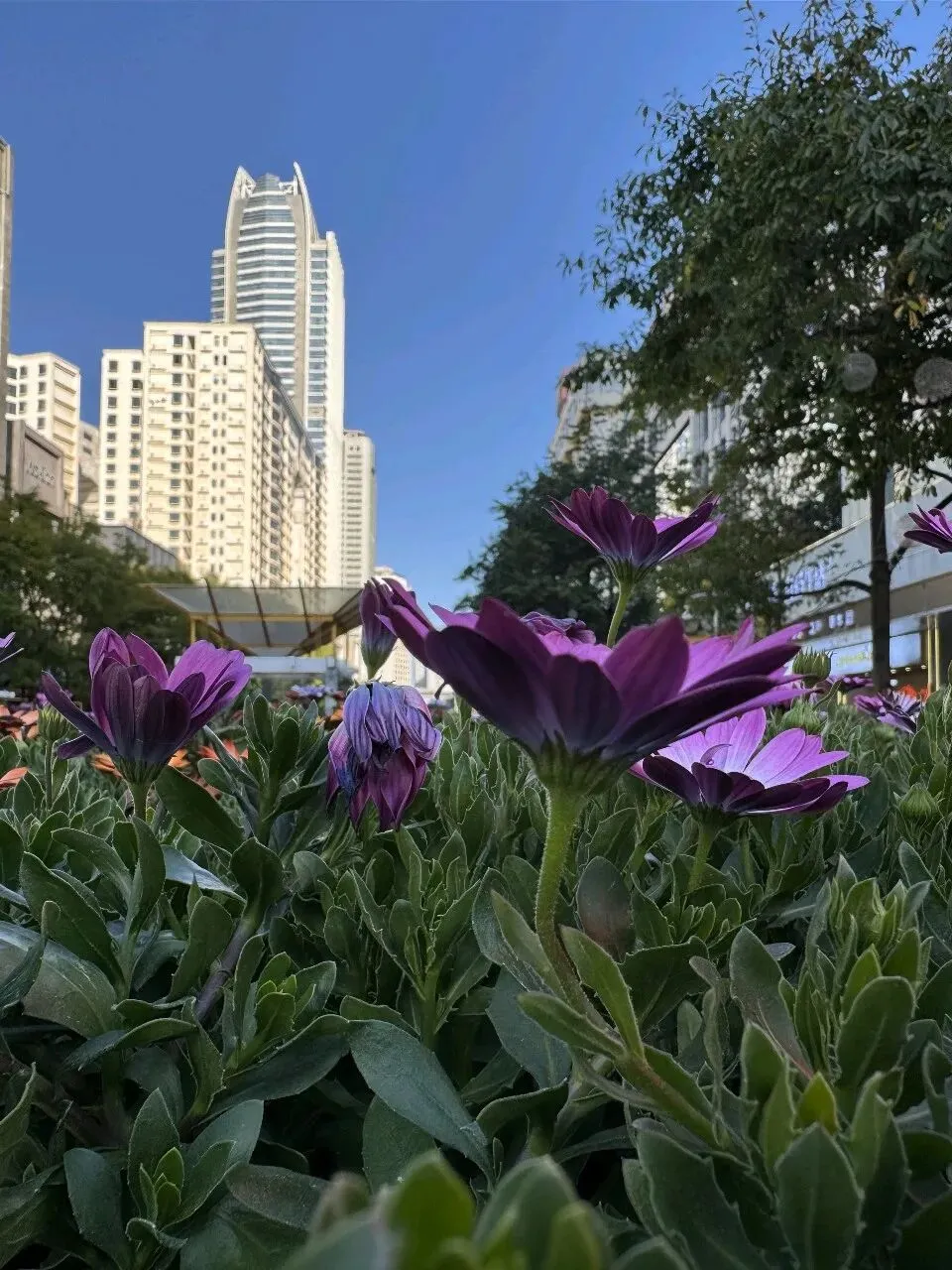 鲜花种在大街上恐怕只有昆明、只有南屏街了。在熙熙攘攘的人流中,在商铺林立的闹市区,各种鲜花娇艳绽放。虞美人亭亭玉立,像舞女的裙;紫色的、黄色的、红色的,像向日葵,嫩嫩的、艳艳的。我自然地放慢脚步、自然驻足观赏。再忙,我们不要忘记对美的追求,对自己一个热爱。