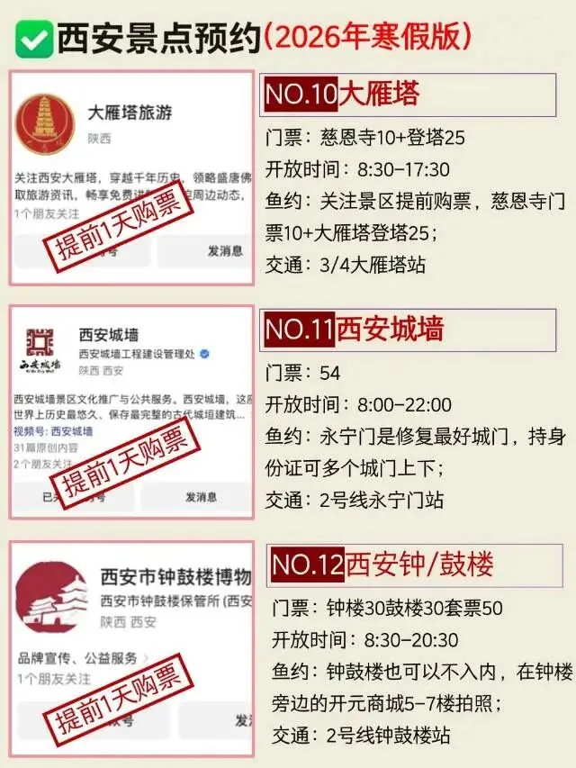 来西安前,这些景点建议大家一定要提前预约;