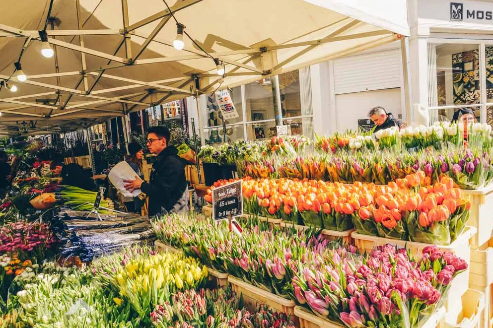 市集: Columbia Road Flower Market 地址: Columbia Road, E2 7RG 时间: 每周日早上8点至下午3点 深入东伦敦,一望无际绽放着灿烂的花束,这就是周日可以看到的场景。哥伦比亚路花卉Columbia Road Flower Market以伦敦最漂亮的周日市场而闻名,虽然说是一条大约500公尺长的道路,每到星期天早晨就会人挤人,还有摊贩浓浓的伦敦乡音Cockney Accent叫卖声,尤其是接近中午差不多要收摊时,许多摊贩都会降价 ,淘到便宜货的时候,再加上去买花的人都是伦敦时髦的帅哥美女,买花兼顾眼睛。哥伦比亚路Columbia Road也完全由独立商店组成,因此在这里花费的每一英镑都支持辛勤工作的当地企业。