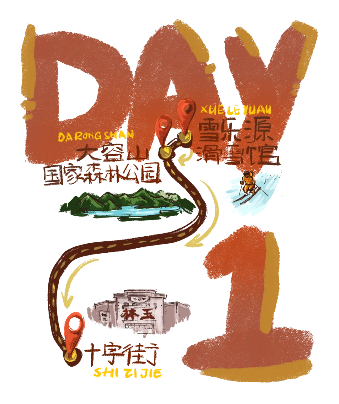 DAY1:「变形实录:雪场嗨玩→打卡“小瑞士”→暴走夜市」