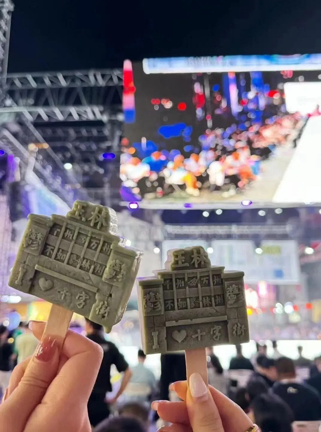 十字街首款文创雪糕,这款雪糕以玉林十字街第二电影院为参考造型,上面刻有“千州万州,不如鬱林州”等字样。雪糕有四种口味:红豆,绿豆,巧克力,奶油。