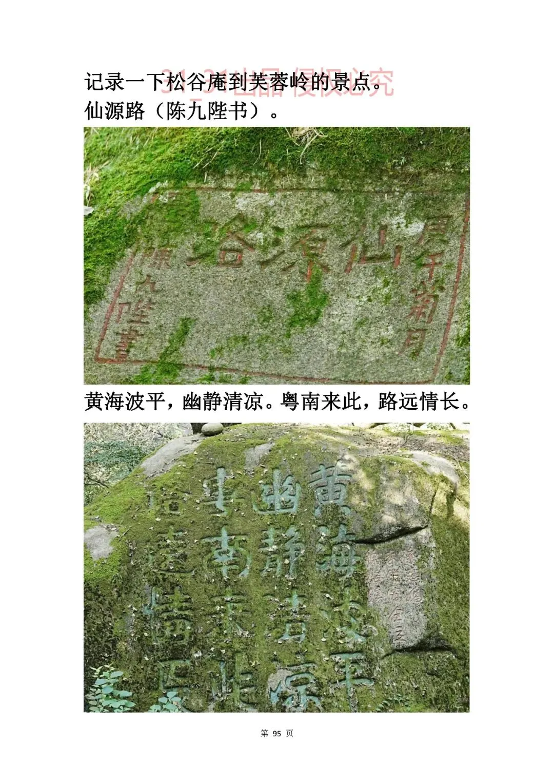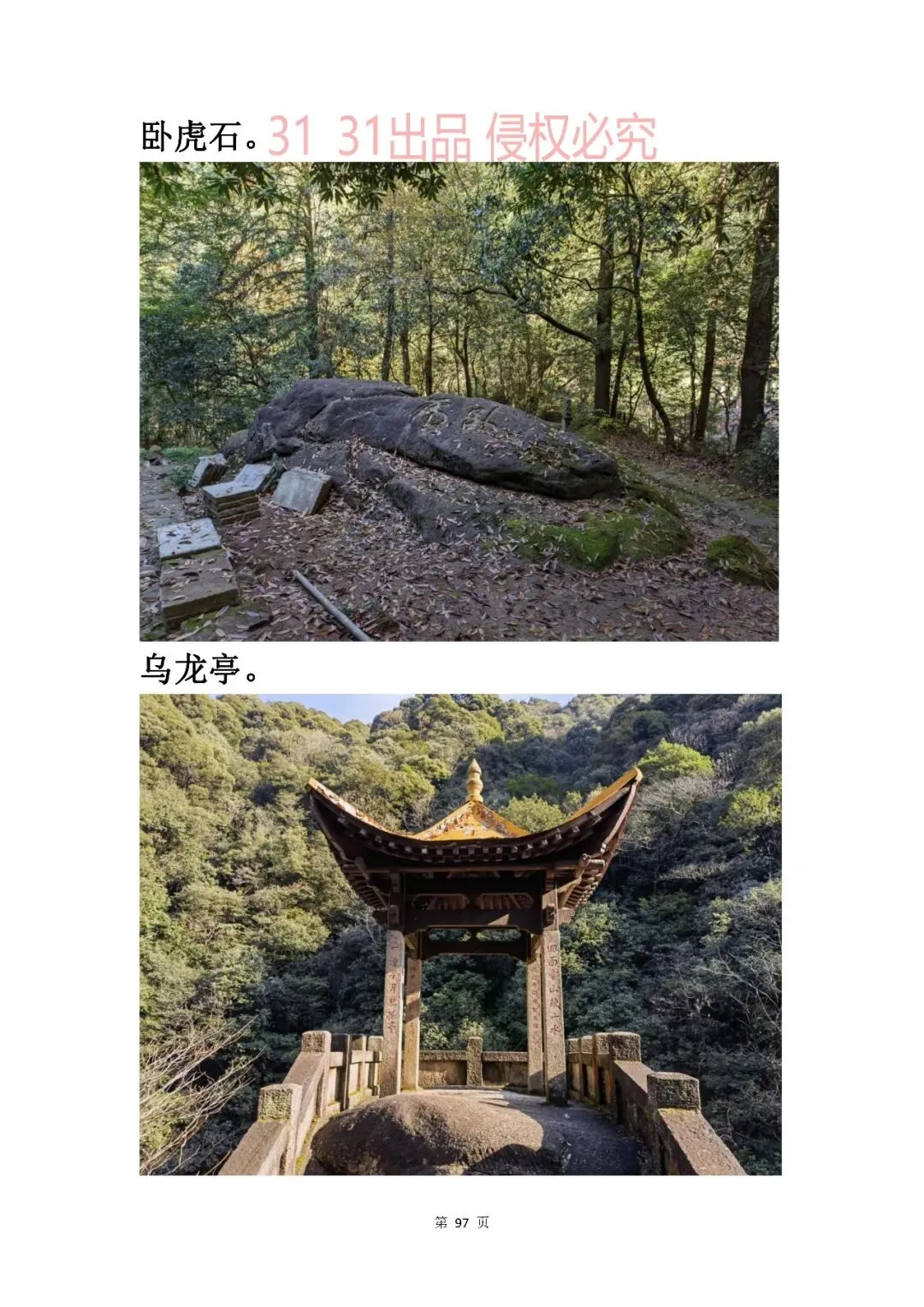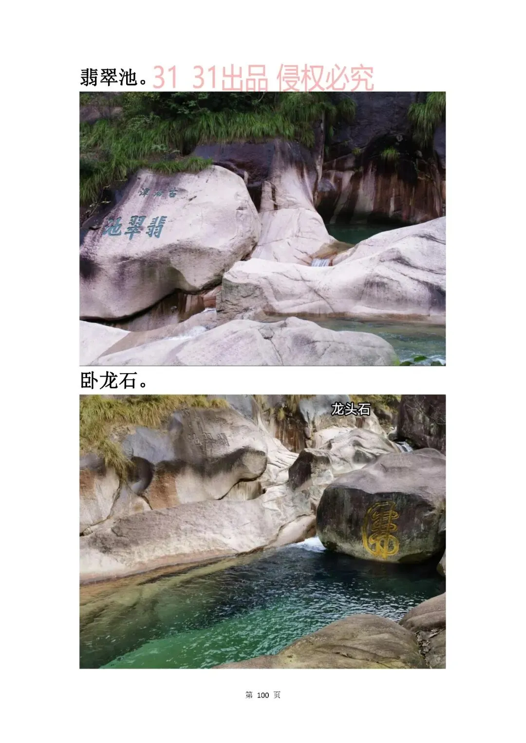 罗列:114座山峰;278个怪石;80株古树名木;75处洞.桥.坡.道;80个观景台(亭);25个瀑布(泉.池.潭);10个塔(庙),188个摩崖石刻,共计850个景点。