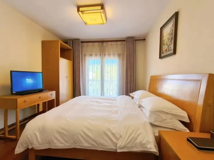 森林一墅大/双床为别墅拼住房间,每间房都有独立卫生间;一楼厨房不可使用,客厅沙发等公共区域共享。(1张1.8*2米大床 或 2张1.2*2米单人床,面积20-30㎡)