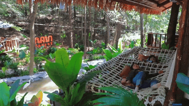 躺在舒适的网床上,聆听自然的声音,感受心灵的宁静与放松。