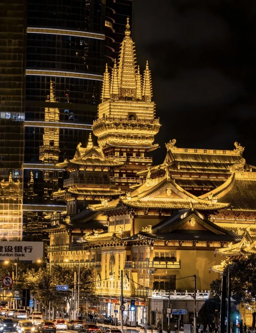静安寺无论早上还是晚上欣赏景色都十分优美。在这一历史悠久的古建筑里,能感受到大城市里少有的喧嚣。