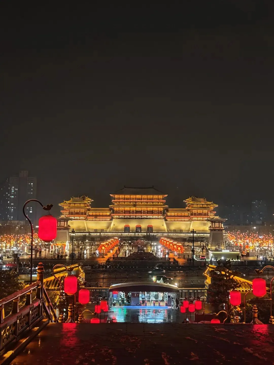 晚上直奔应天门!登上阙楼俯瞰夜景,整座城楼灯火通明,搭配着绚烂的灯光秀,仿佛梦回大唐盛世,氛围感直接封神!