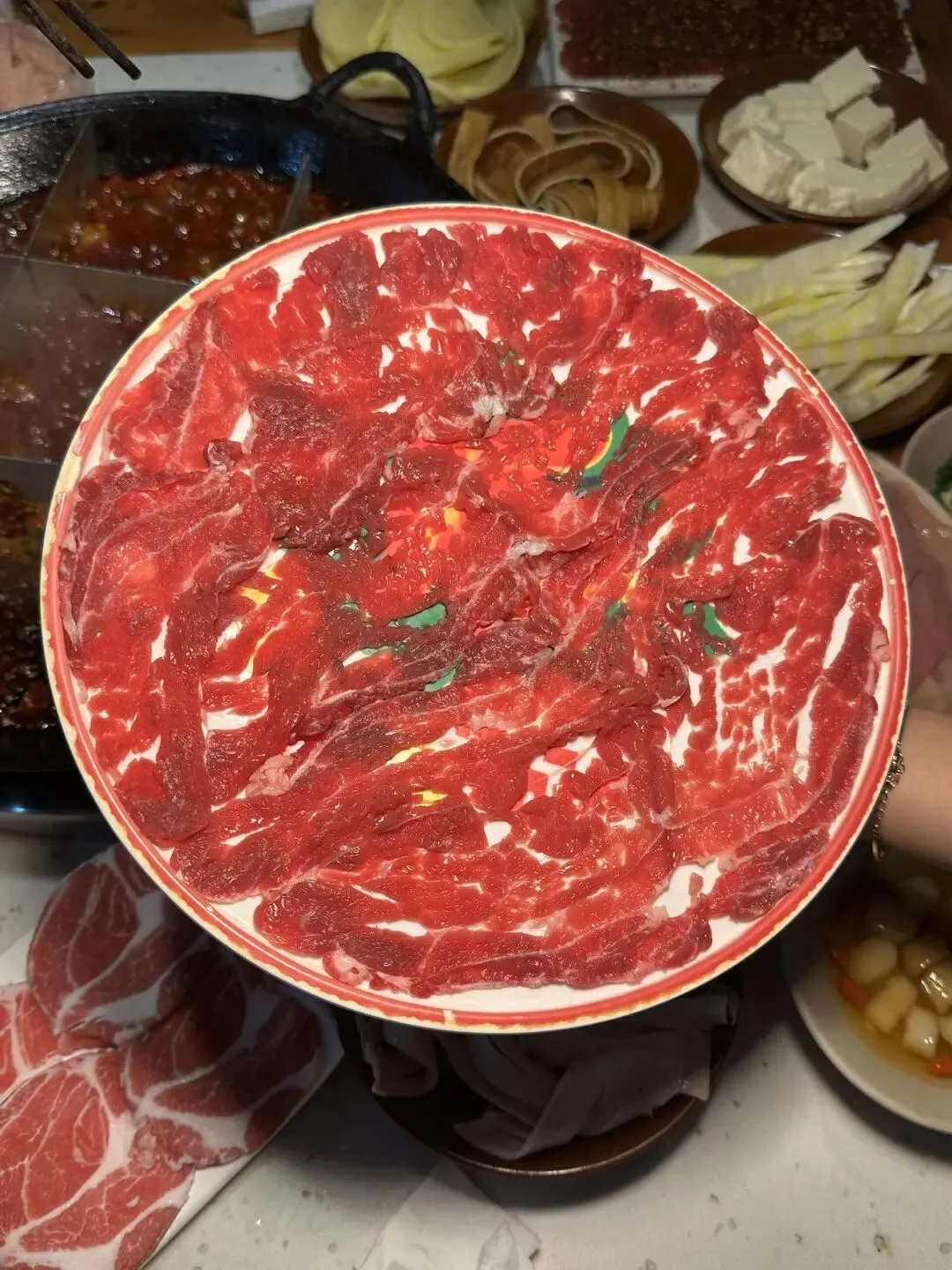 牛油底料醇厚香浓,煮开后香气直钻鼻腔!新鲜毛肚七上八下涮熟,脆嫩爽口;鹅肠、黄喉、大刀腰片下锅,每一口都是极致的满足;双椒牛肉辣得过瘾,小酥肉直接吃香到跺脚!
