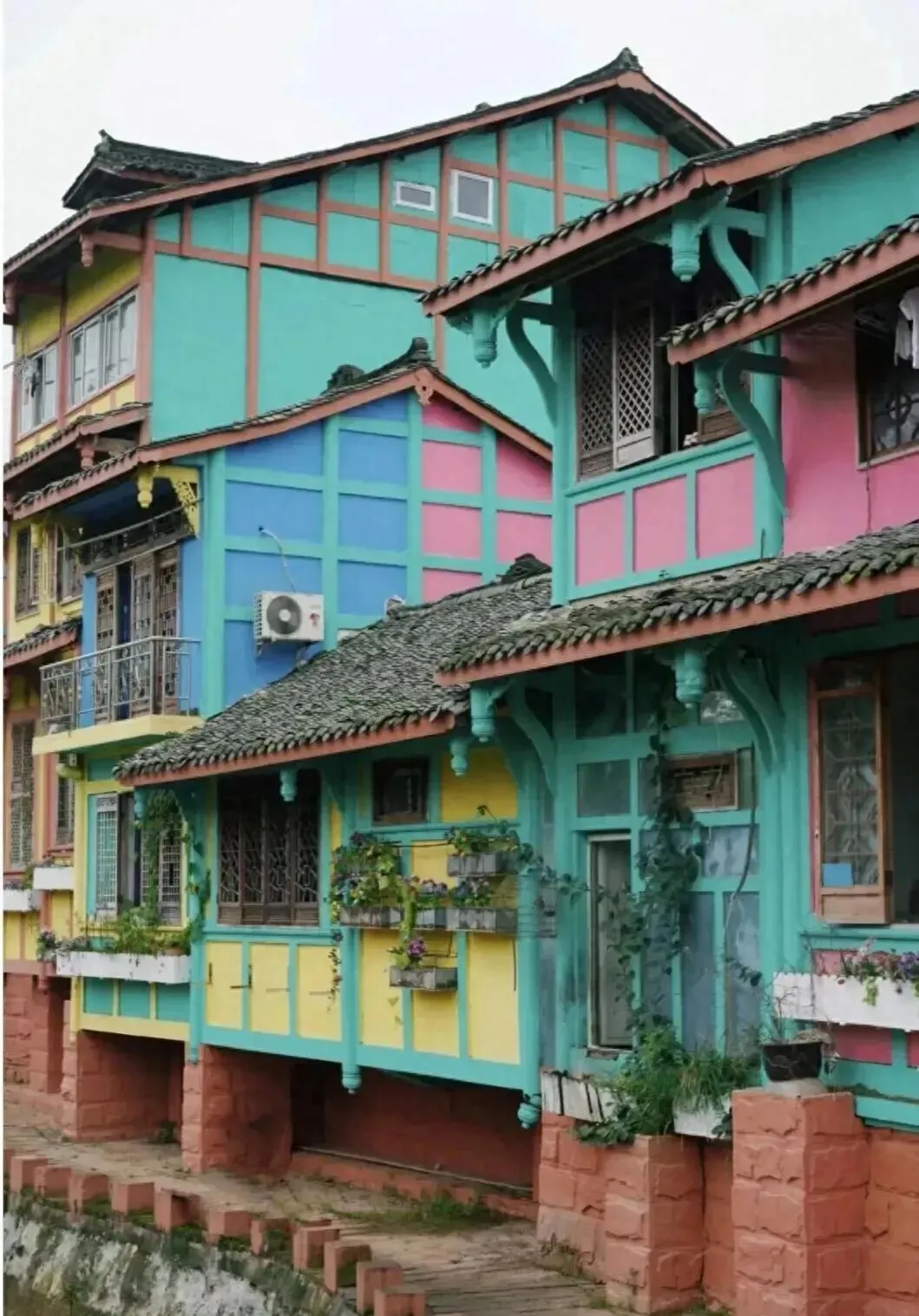 古镇保留了不少老式木屋建筑,沿河被粉刷成了五彩斑斓的颜色,很是吸睛~