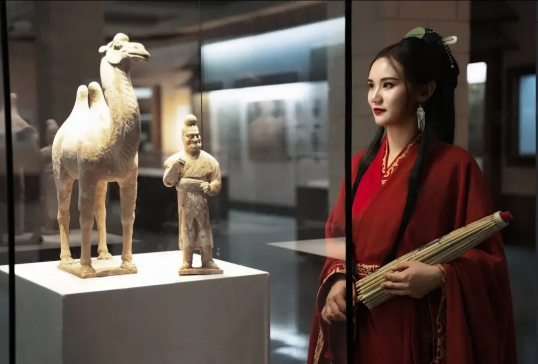 在张骞广场,可以拍照的地方很多,有张骞铜雕像、汉阙牌楼、博物馆展厅等。
