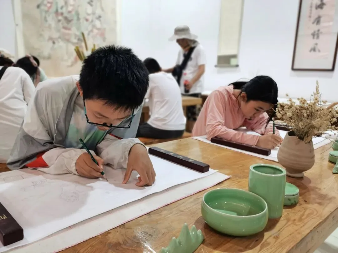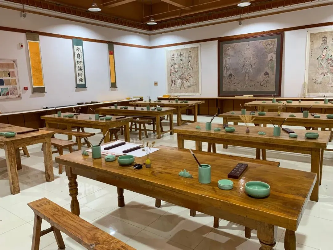 这里可以体验陶艺制作、烽火传递、修筑长城、拓片制作、壁画临摹等研学课程。馆内还有琳琅满目的敦煌文创产品、书籍等。
