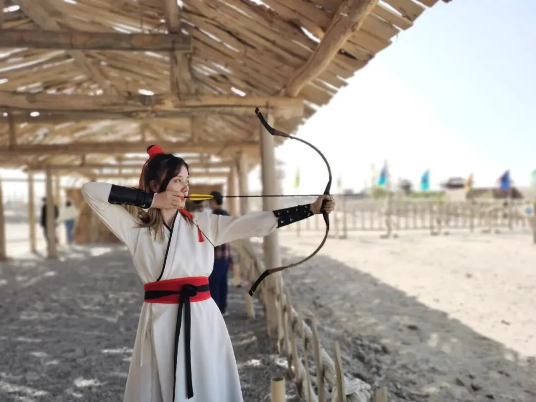 在这里陈列有很多刑具以及农耕用具,可以免费体验,为自己拍几张照片或者拍一些小视频作为留念。在旁边的射箭场内体验一次拉弓射箭的感觉,检验一下自己的武力值!还有阳关将军同款甲胄可以租赁。在这里你可以尽情体验军事文化和民俗游戏!