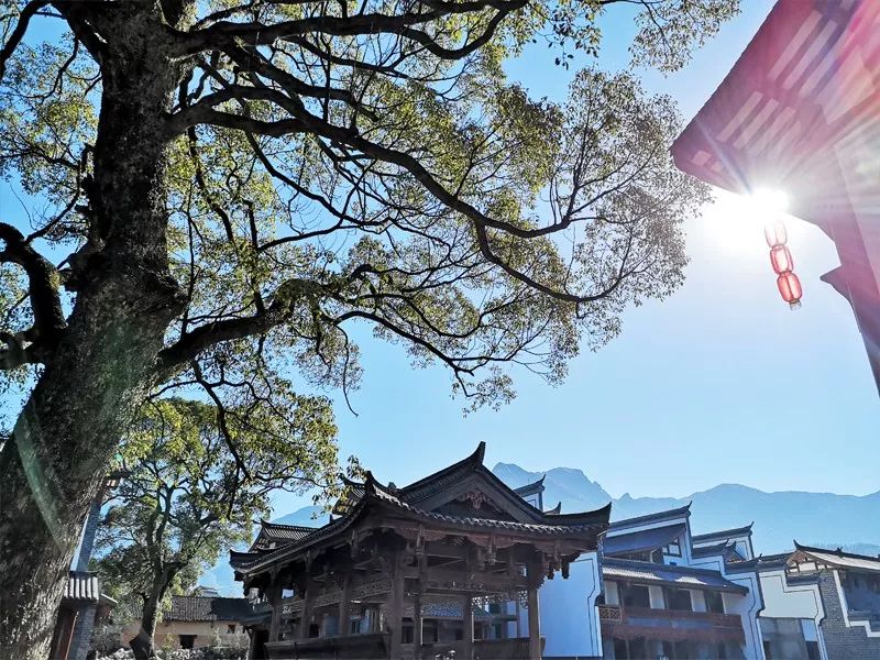 阳光穿过古色的窗沿,洒在门上、树上、和脸上。
