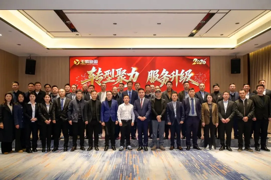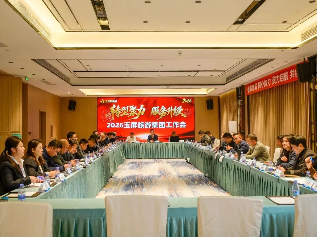 转型聚力,服务升级!近日,2026玉屏旅游集团工作会在山城重庆成功召开,集团总裁汤佩玄与各地分公司负责人齐聚一堂,共同回顾总结2025年的卓越成绩,全面谋划部署2026年集团高质量发展新蓝图。