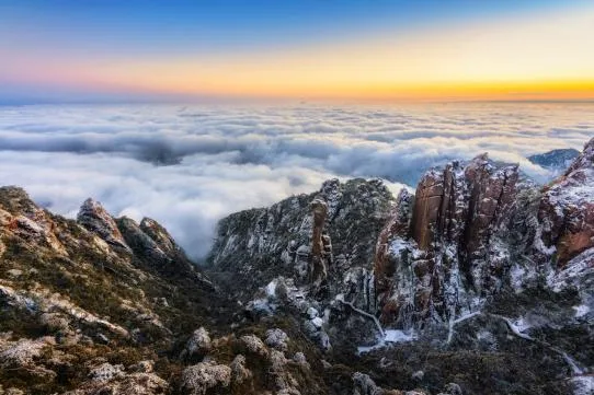 在三清山的雪,落在青灰的岩峰上