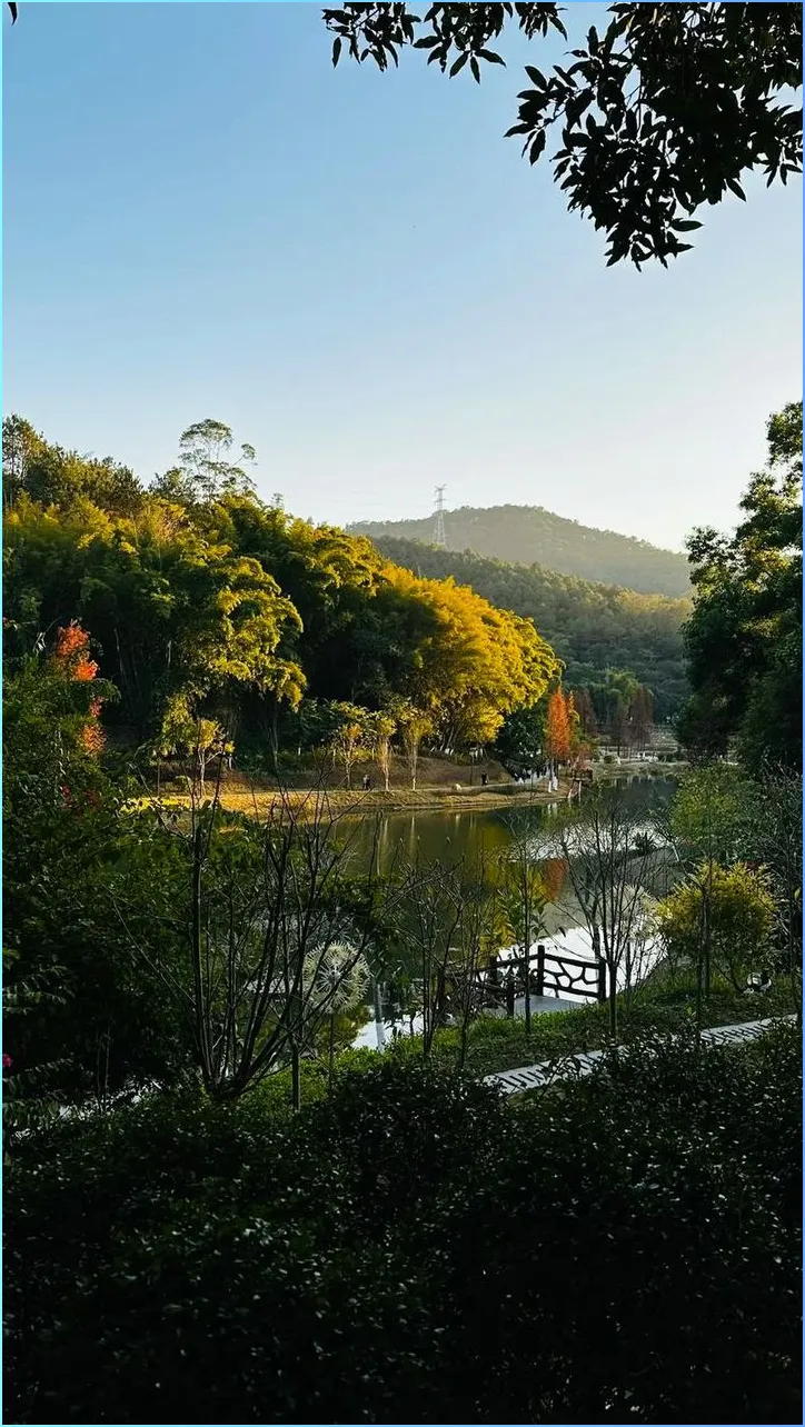 吃完,去了南山森林公园。公园在城西,不远,十来分钟就到。山不高,但树多,都是粗壮的老树,枝叶茂密,遮天蔽日。山路是青石板铺的,两边是竹林,风一吹,竹叶沙沙响,那种声音像浅绿色的细线从耳边飘过去,轻轻的,柔柔的。走在林子里,脚步声都被树叶吸走了,安静得能听见自己的呼吸。