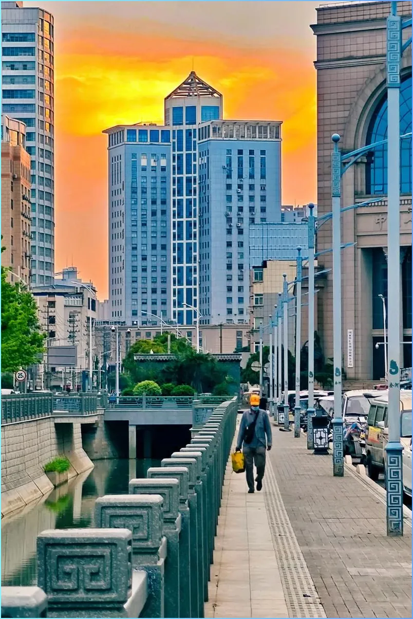 傍晚的时候,老城的街道最有意思。夕阳斜斜地照过来,光在墙上打出一片金黄色,影子拉得很长。有卖水果的小摊,西瓜切开,红瓤上还带着水珠,在光里亮晶晶的。有卖凉皮的推车,老板在切凉皮,刀起刀落,很有节奏。