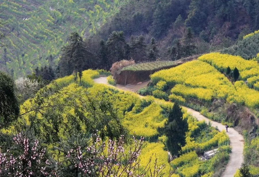 油菜花盛开之际,漫山遍野的绚烂,宛如一顿秀色大餐,大饱眼福。
