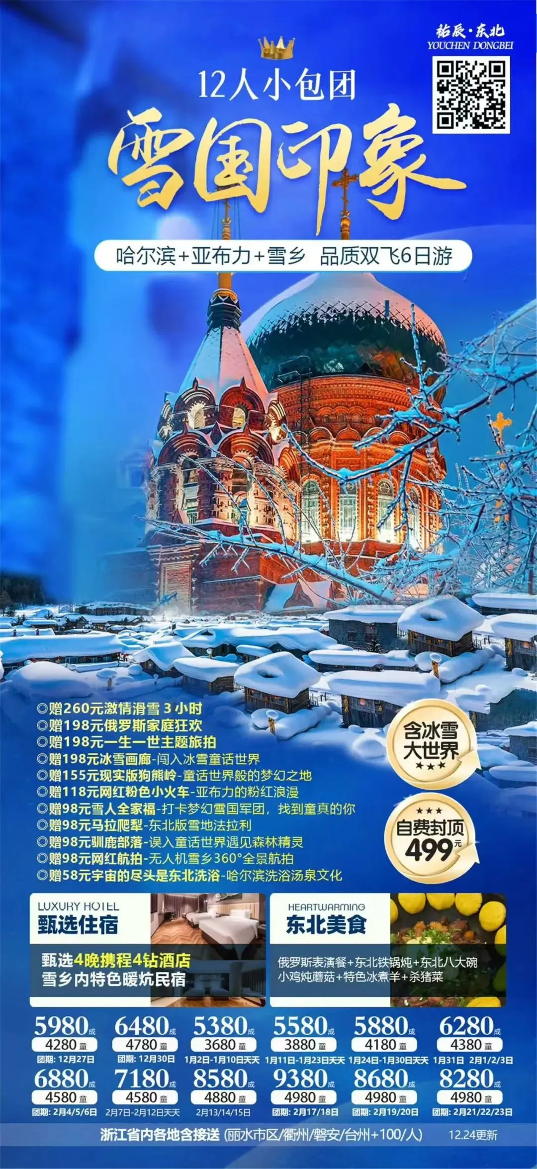 【春节·东北旅游推荐】哈尔滨、吉林、延吉、长白山 #冰雪奇缘 · 极致玩雪 半自由行 跟团游