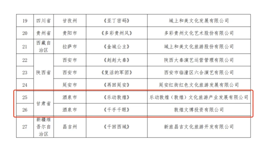 第二批全国旅游演艺精品名录公布!甘肃两项作品入选