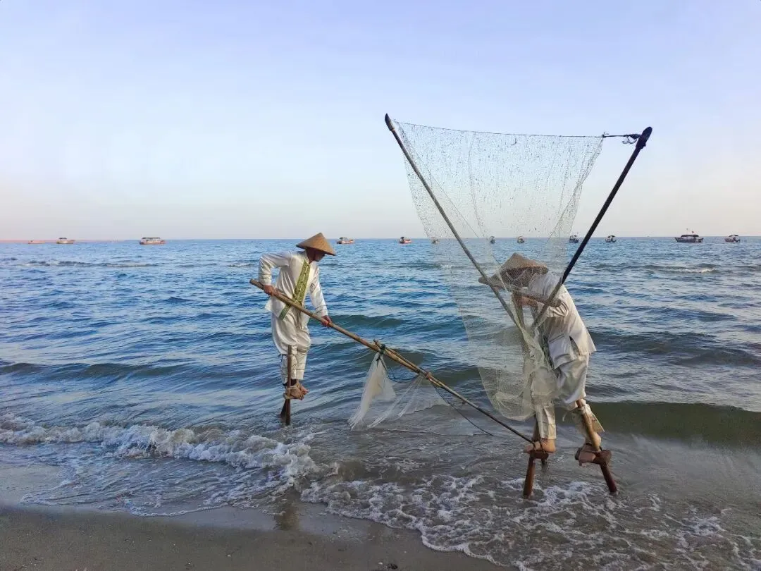 ✨ 𬇕尾金滩:大陆海岸线最西端的温柔,看渔民踩着高跷捕鱼的非遗奇景,听独弦琴一弦弹百音的悠扬……烟火气与诗意在此相融,正是霞客偏爱的人文与自然共生之景。
