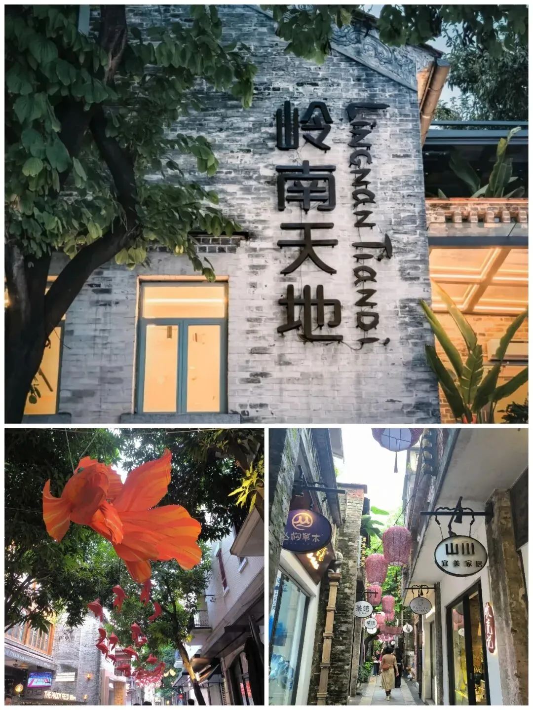 参观完祖庙后可以去附近的岭南天地逛逛,仅一街之隔,佛山岭南天地可以被看作是祖庙历史的“活化延伸”。它将一片拥有900多年历史的古街区,以“修旧如旧”的方式改造成了集文化、旅游、餐饮、商业于一体的开放式街区。
