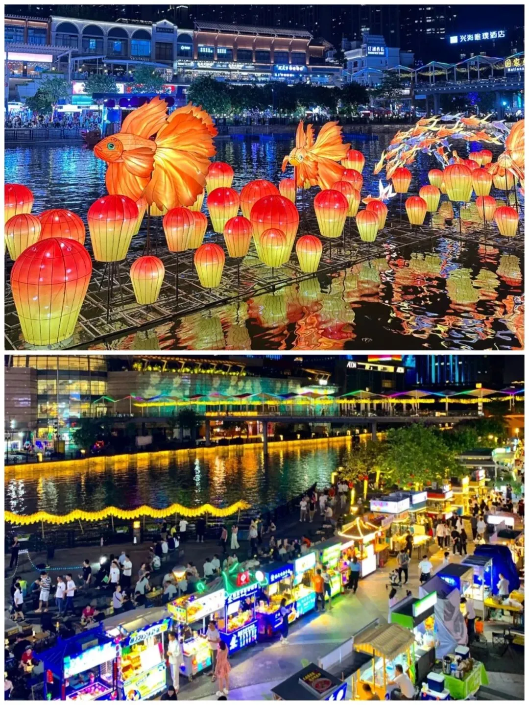 逛完了平洲玉器街,下一站去千灯湖公园逛逛,感受自然与城市的融合。傍晚时分前往灯湖西街,灯湖西街是紧邻佛山千灯湖公园的一个开放式商业街区,以其璀璨的夜景和潮流氛围而闻名,可以观看水幕表演和城市灯光秀,整条街上遍布特色美食和小吃,既饱眼福又饱口福。