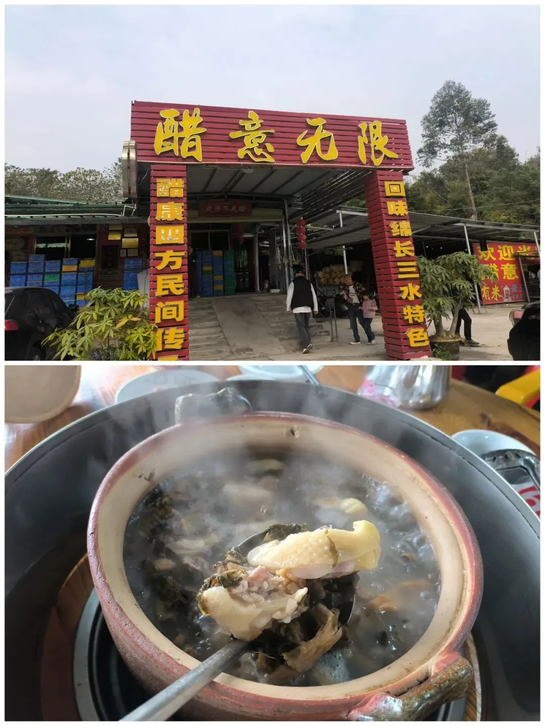 三水最有名的特色美食是臭屁醋。臭屁醋并非普通的醋,而是一种用大米发酵的米醋汤,距今已有两千多年历史。因为它有消杀细菌、软化血管的作用,因此也被称作是“长寿醋”。我们到三水的第一站去的就是臭屁醋火锅店“醋意无限”,当地朋友阿珊找的,据说是臭屁醋入门级的店,适合我们这种第一次吃臭屁醋的小白。