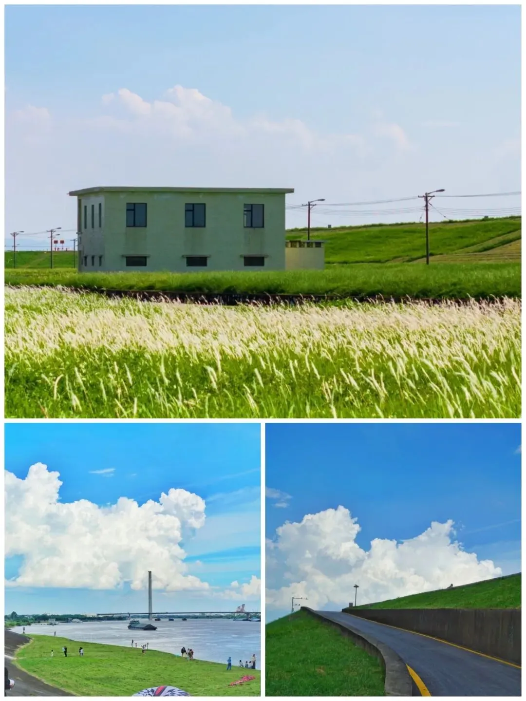 下一站来到了北江大堤,大堤沿线绿草如茵,视野开阔,是骑行、露营、散步、欣赏日落的热门休闲地。