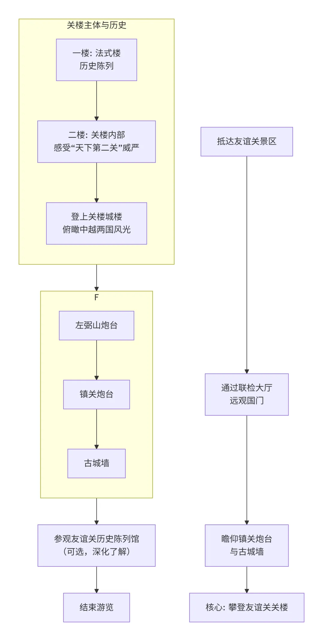 下图清晰地展示了友谊关景区的核心游览路线与历史遗迹分布: