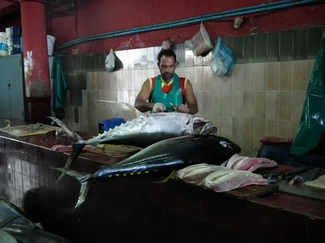 (4)马累市场(Produce Market)位于马尔代夫首都马累的Haveeree Hingun,是一处免费开放的集市,该市场分为农贸市场和鱼市场两部分。农贸市场内设有成堆的椰子、香蕉等本土种植及进口蔬菜摊位,并售卖以萎叶包裹的特色小吃,游客可在此感受马累的市井生活气息。邻近的鱼市场每日展示金枪鱼、章鱼等海产捕捞及交易过程,包括搬运、分类、宰杀等环节,尽管处理内脏时气味浓烈,但完整呈现了马尔代夫渔业文化。市场内还设有手工艺品和纪念品销售区,提供贝雕、珊瑚手镯等特色商品,成为游客体验本土风情的场所。