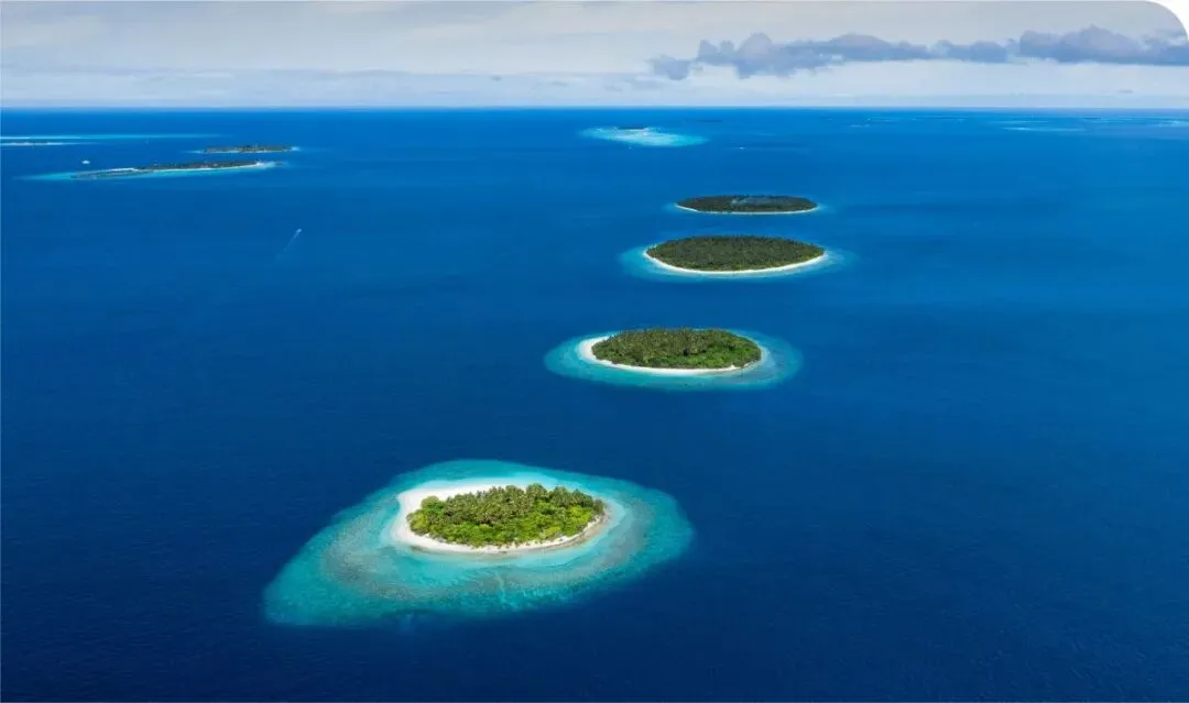 马尔代夫由1192个珊瑚岛组成,岛屿岸线长达871公里。岛屿分布在9万平方公里的海域内,陆地面积只有298平方公里。这些岛屿的地理位置形成了26个环礁双链。蓝天、海洋、沙滩都是最为著名,被誉为“印度洋的珍珠”,最大的特色就是一岛一酒店,酒店与海景融为一体,让游客时刻沉浸在美景之中。