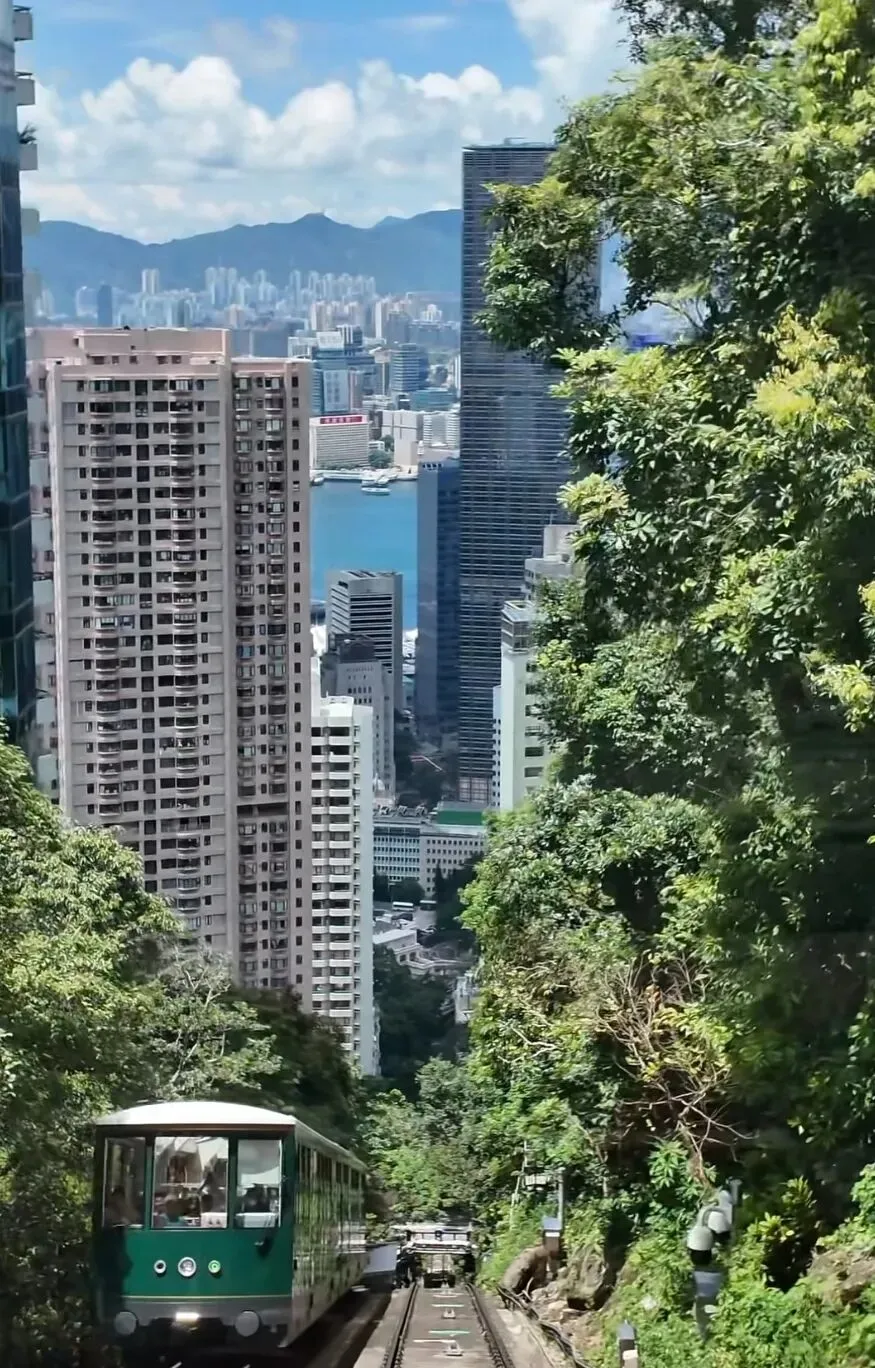 乘坐山顶缆车可轻松上山,复古车身搭配全景玻璃窗,沿途能将香港著名建筑地标、山林住宅与维多利亚港景致尽收眼底,是游客来港必打卡之地。
