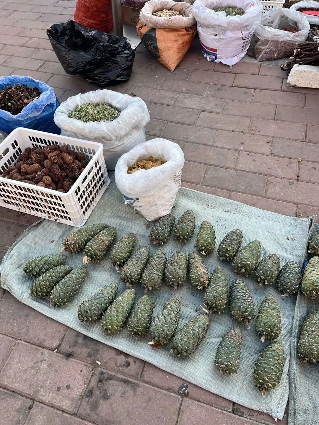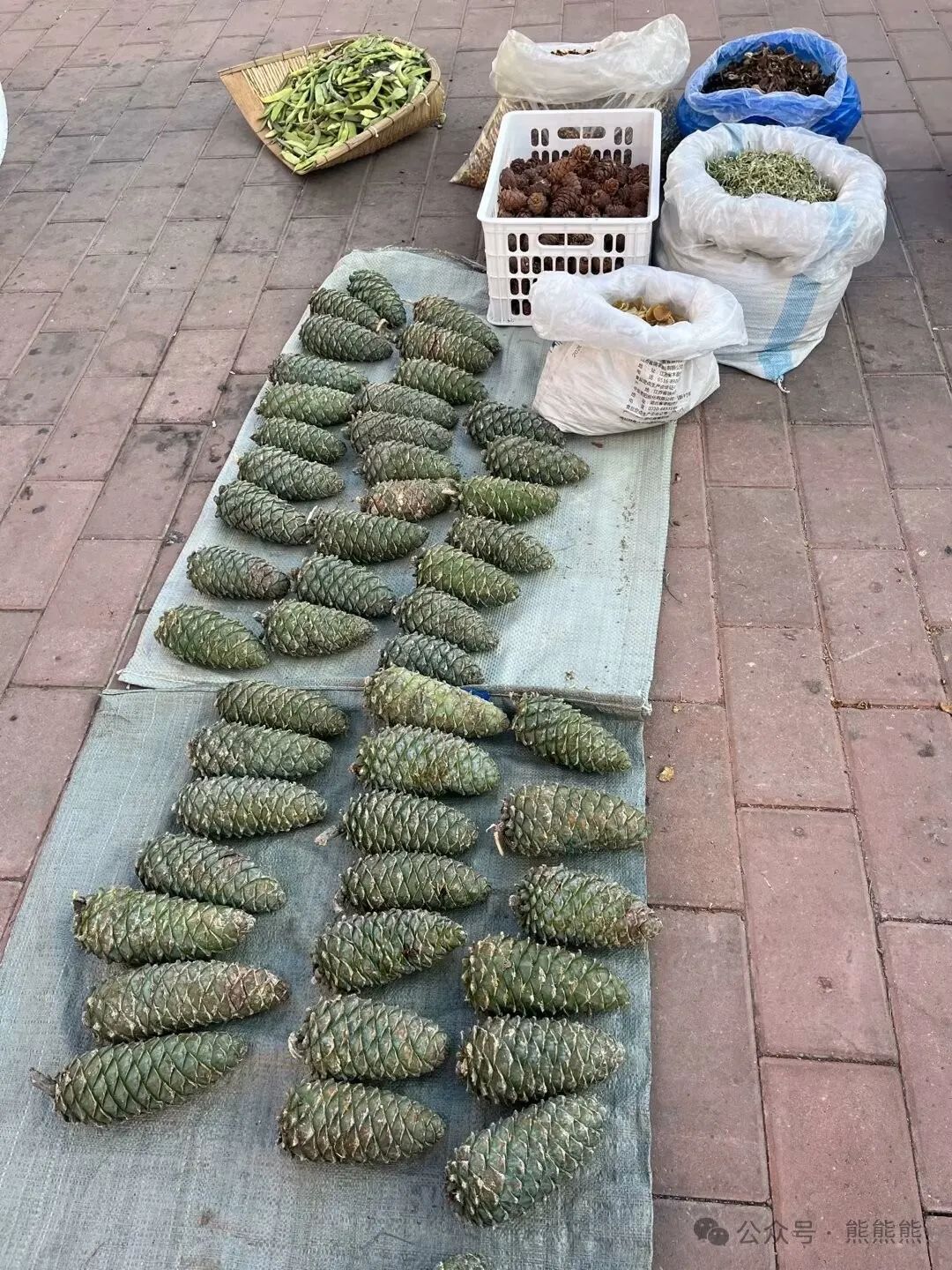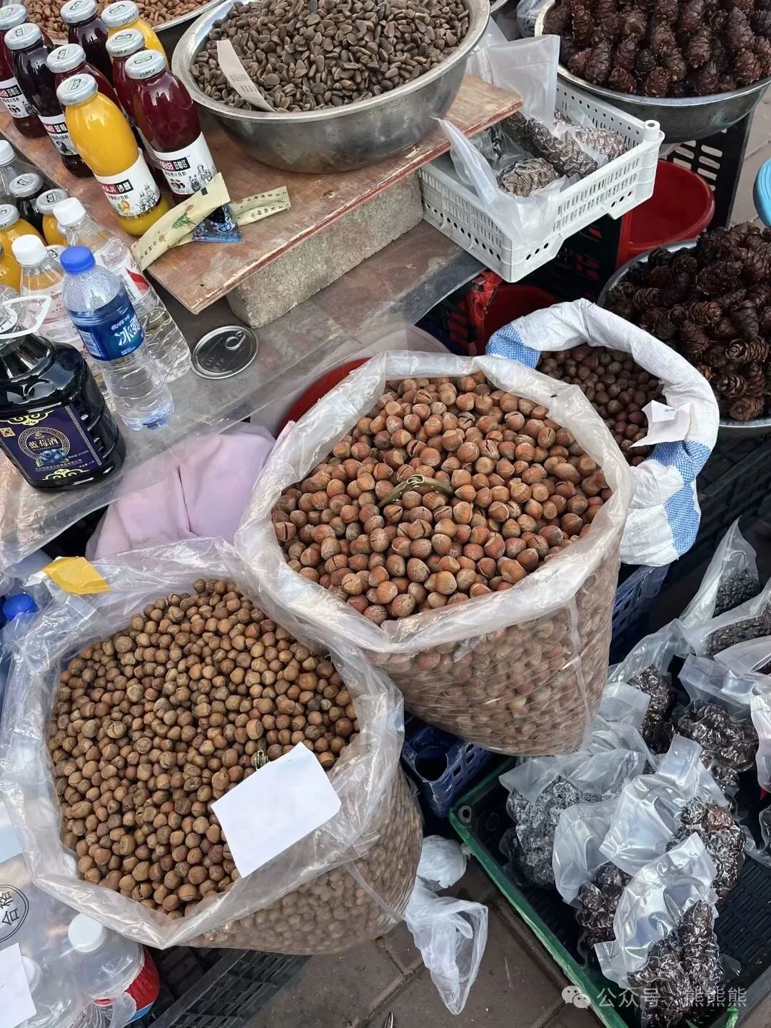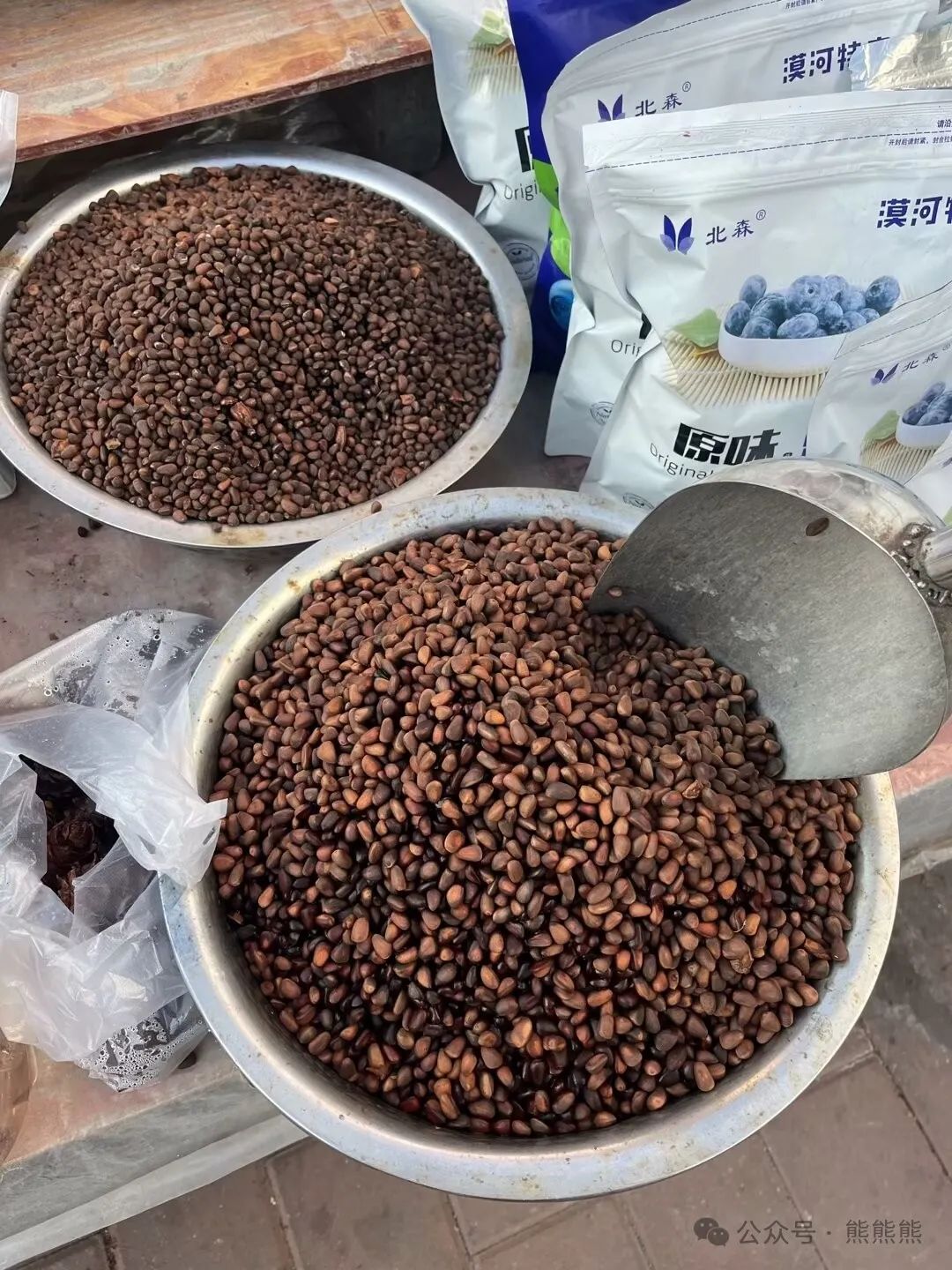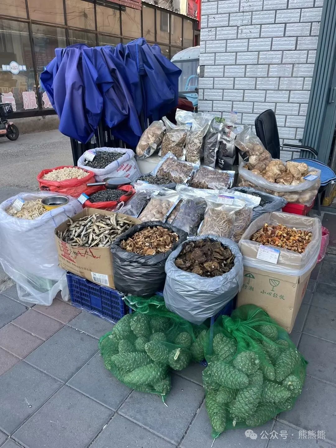 到预定的宾馆放好东西之后,就下来逛逛,拐个弯就拐到一条卖干货的街。夏天应该是大兴安岭物产最丰富的时候,各种各样的坚果、蘑菇,我都没见过。而且大兴安岭的坚果真好吃啊,味道非常正,就不是随便买来的那种没有味道的坚果。