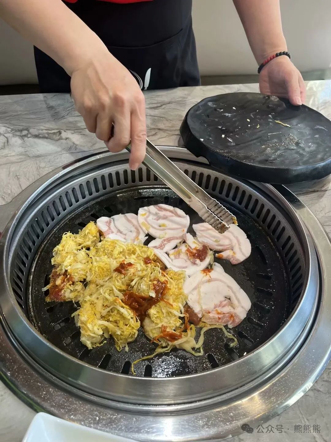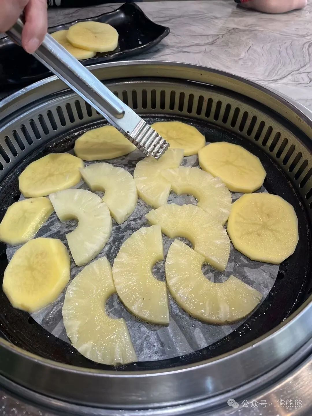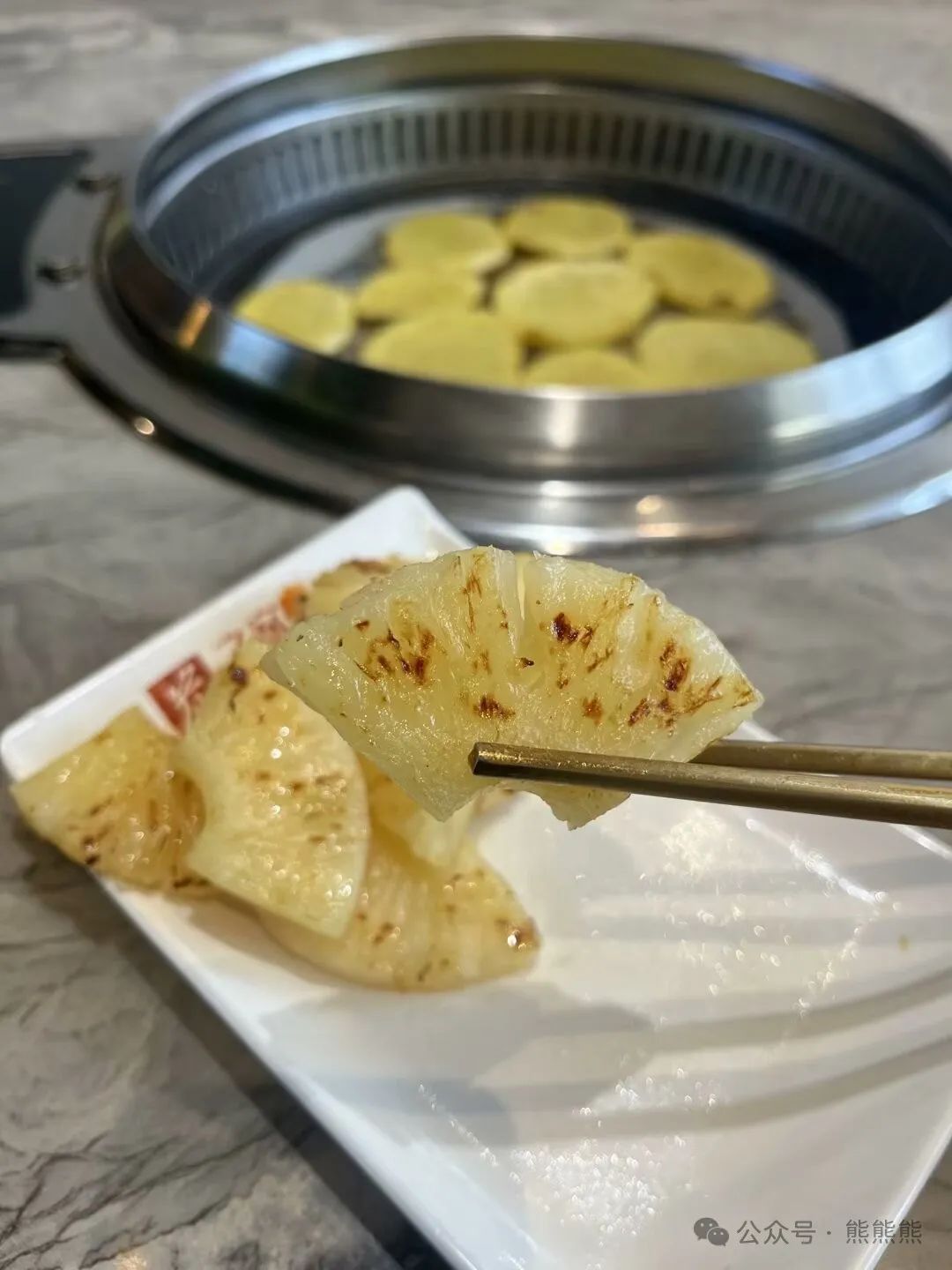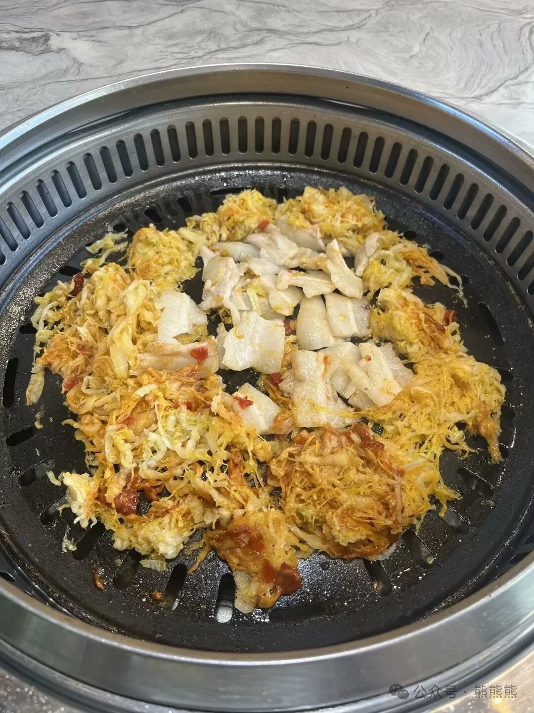 香死了!肥肉放在中间,烤出的油浸到酸菜里,香死了!而且烤不同的东西还给换不同的烤盘!