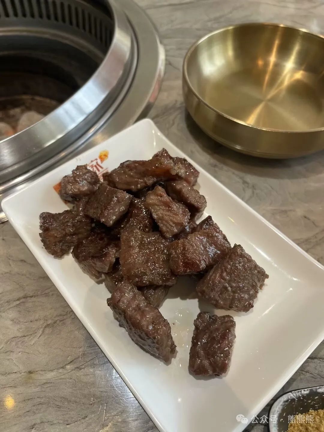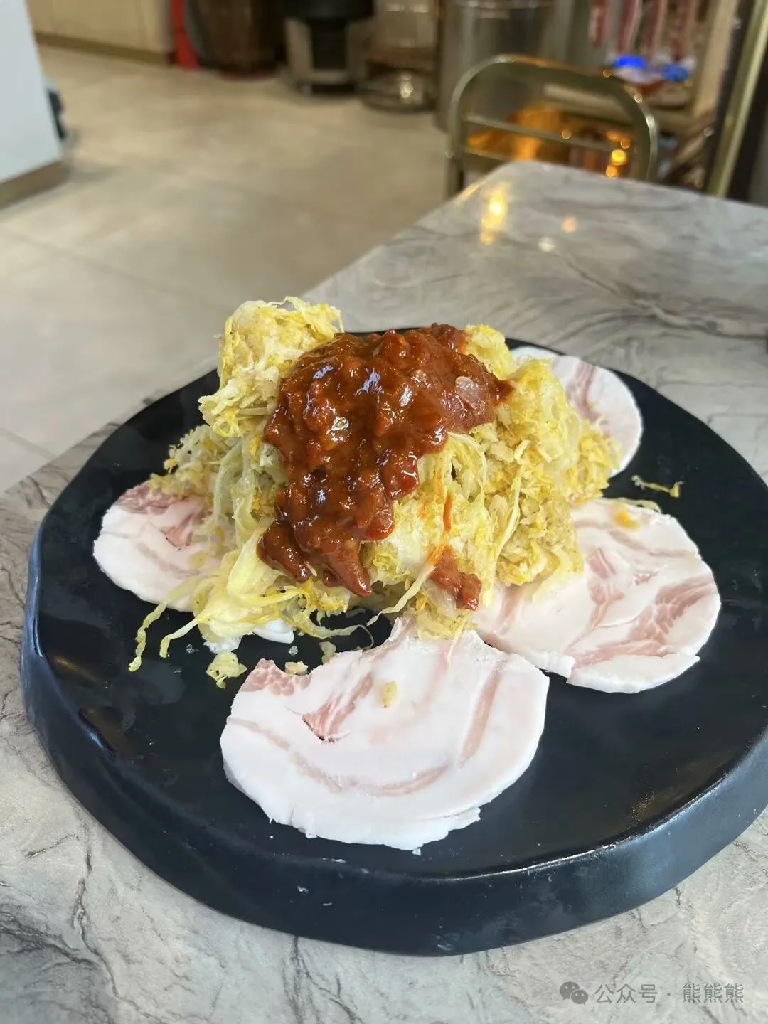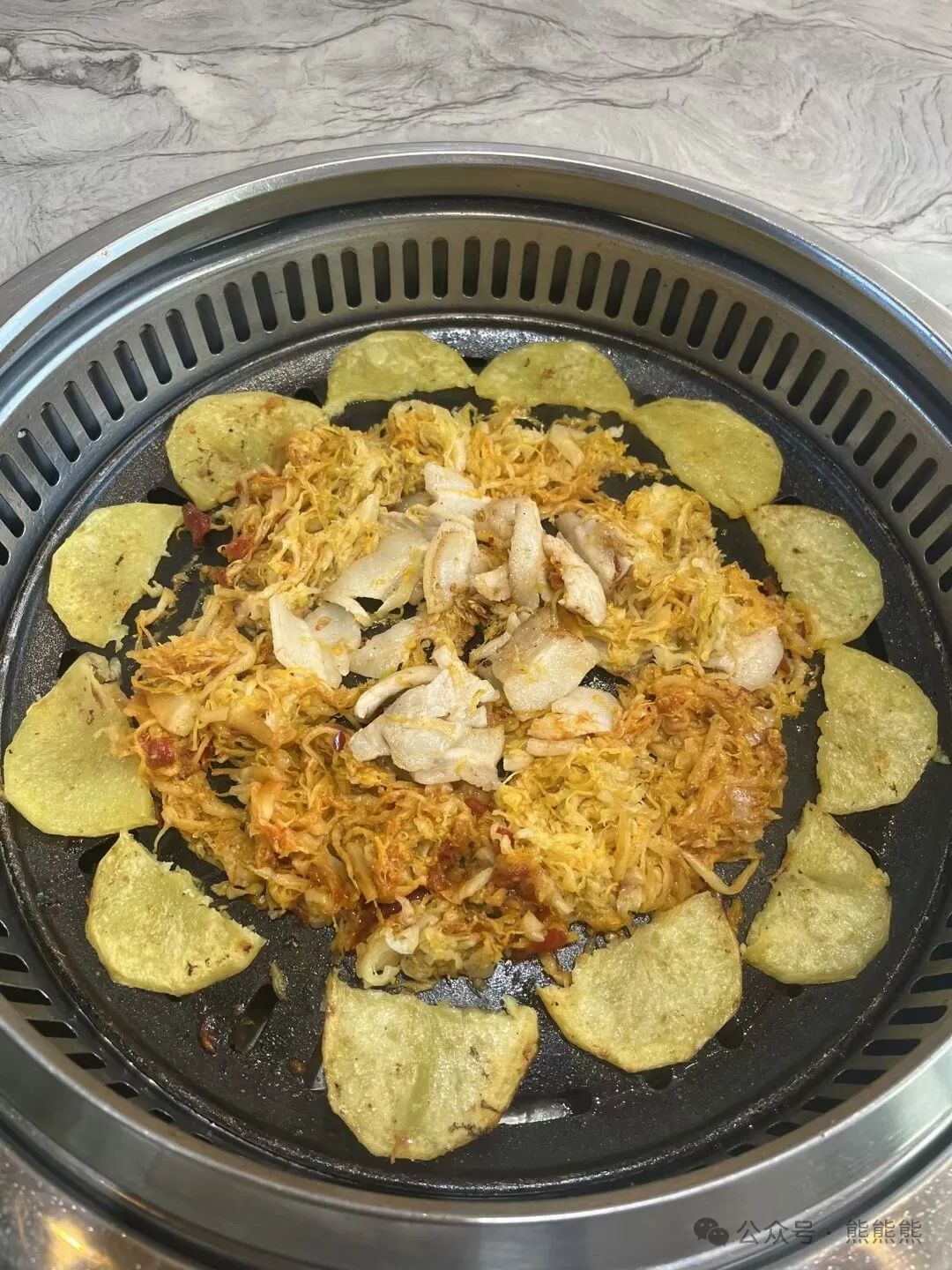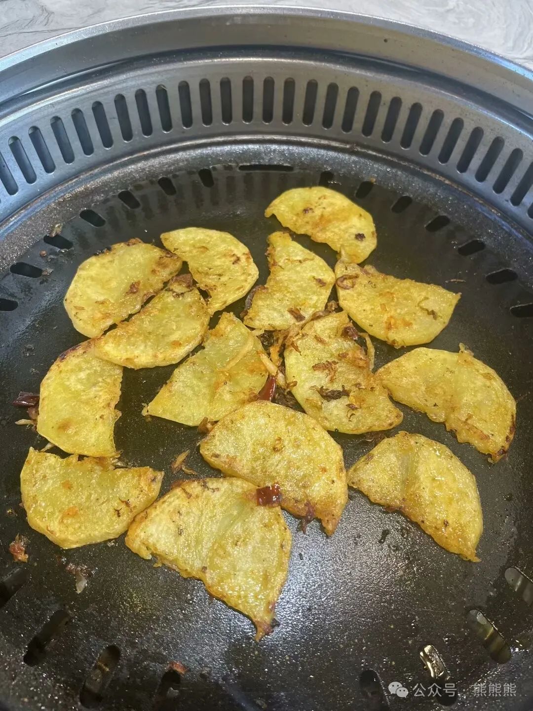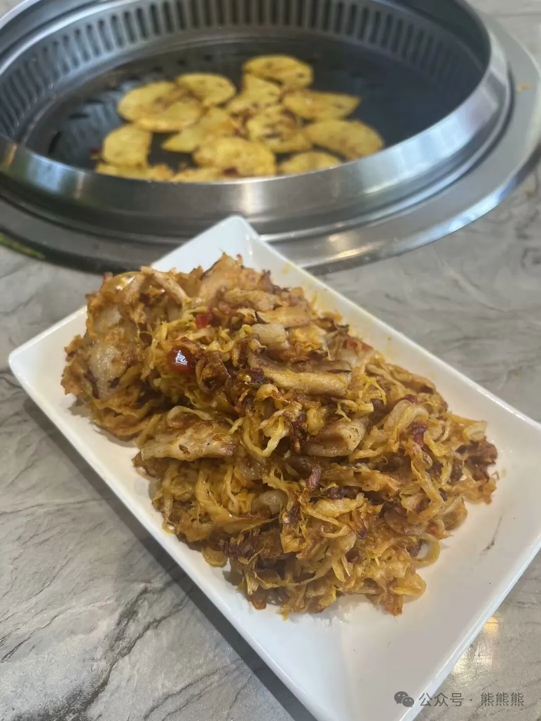 香死了!肥肉放在中间,烤出的油浸到酸菜里,香死了!而且烤不同的东西还给换不同的烤盘!