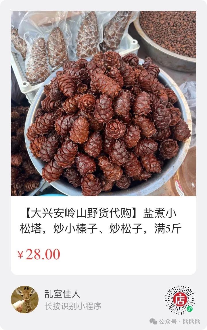【榛子和松子可以在微店买到,店里下单之后我联系漠河这家干货店老板发货——