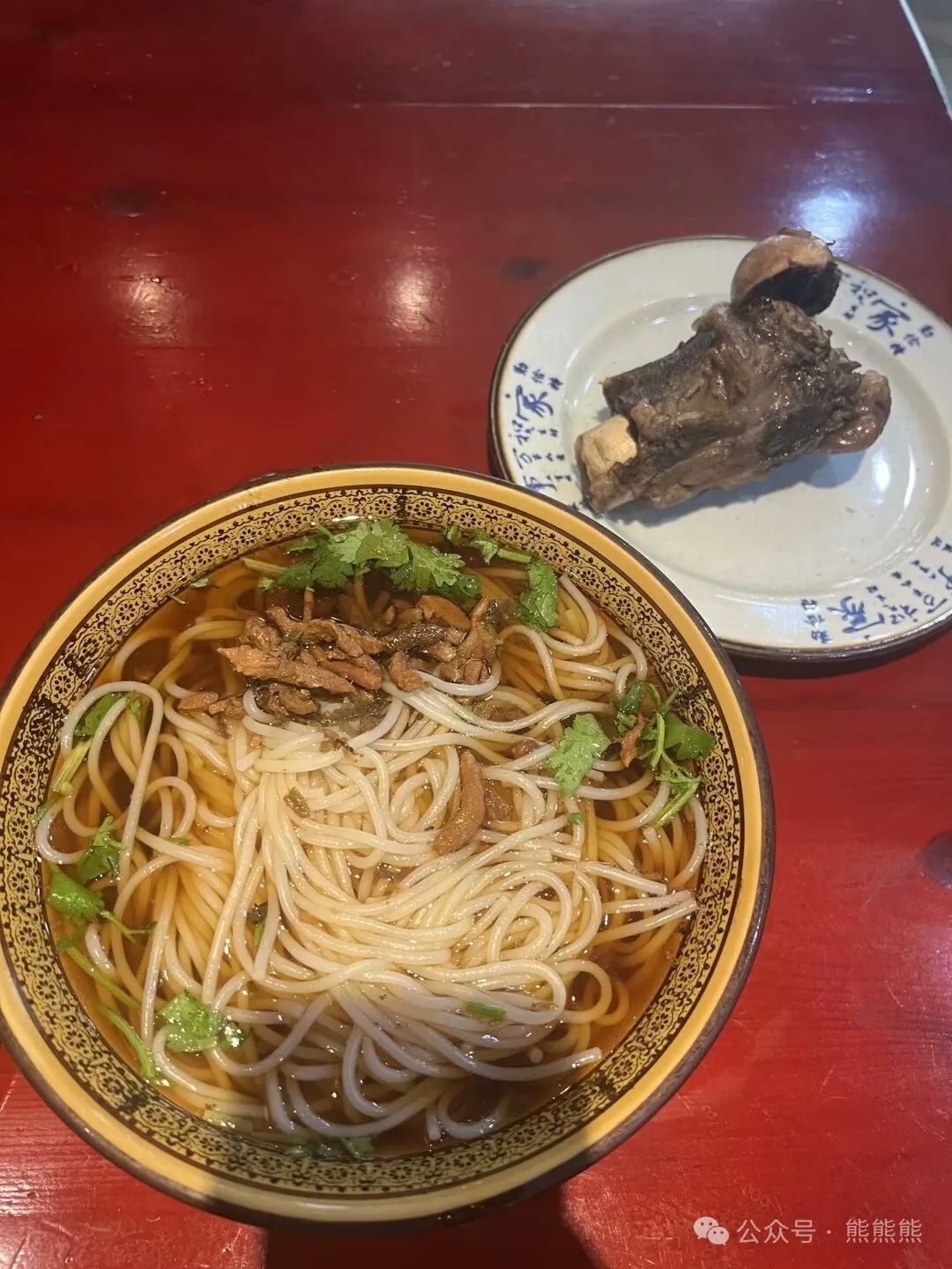 在干货店买了松塔、松子、榛子,看到旁边有家面馆,就去吃了个米线