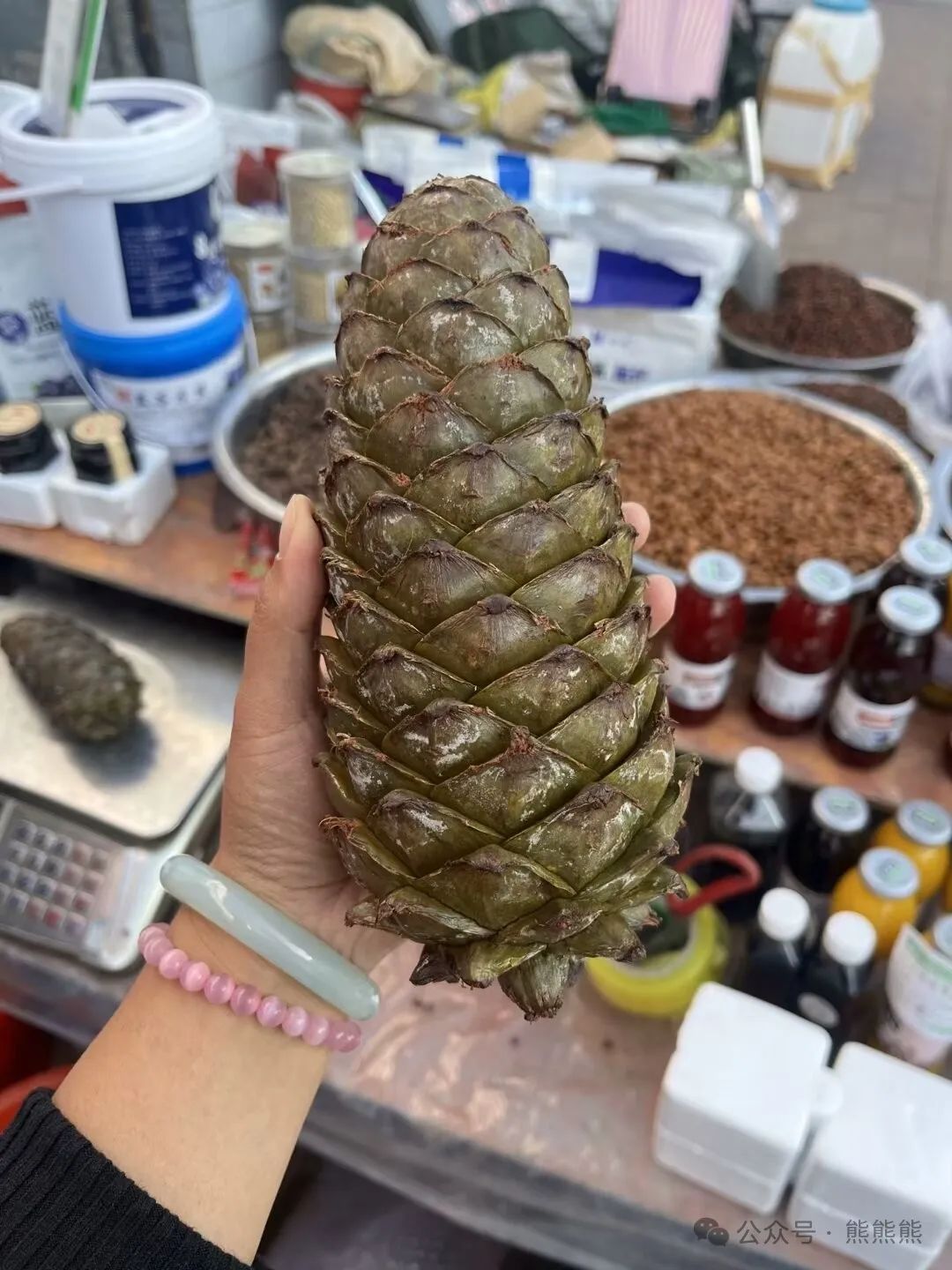 没煮过的大松塔,真漂亮!这玩意儿好看不好吃,没味儿,我觉得买来当装饰品很好