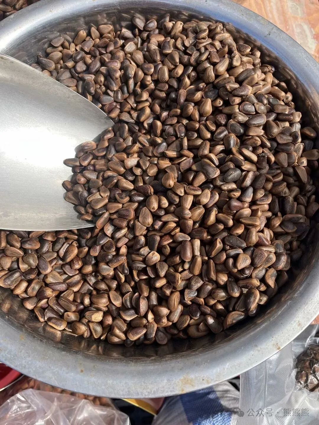 盐煮小松子,这个煮好之后很香很香,就是太费时间了,一点点磕,一斤磕一年的感觉……
