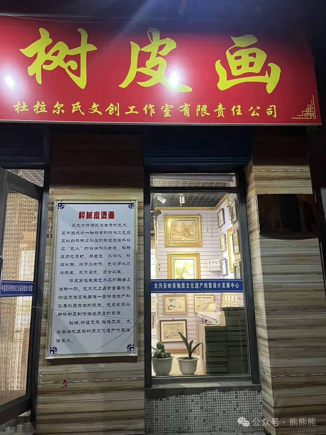 看到一家鄂温克族的树皮画商店,买了两幅画