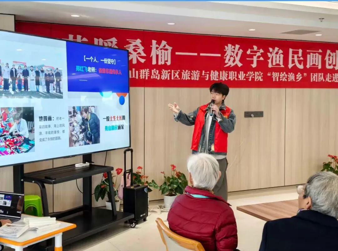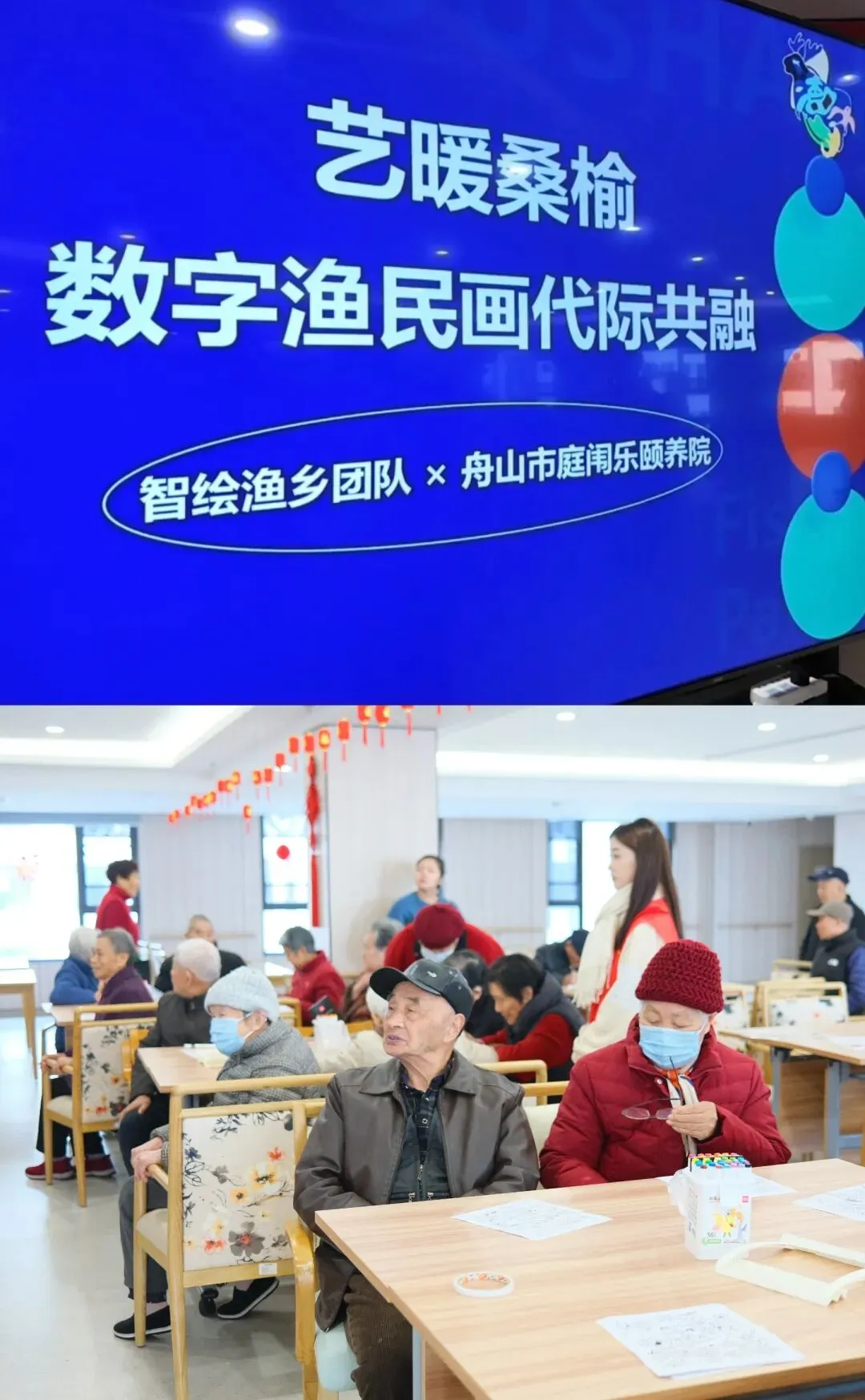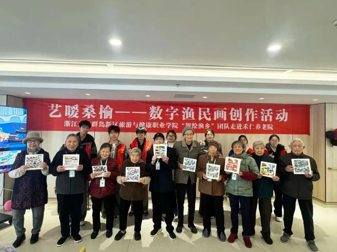为传承舟山宝贵的非物质文化遗产,搭建青年一代与长者情感交流的桥梁,2026年1月16日上午,我院"智绘渔乡"团队走进禾仁庭闱闱乐颐养社区,开展"艺暖桑榆-数字渔民画代际共融"公益创作活动。