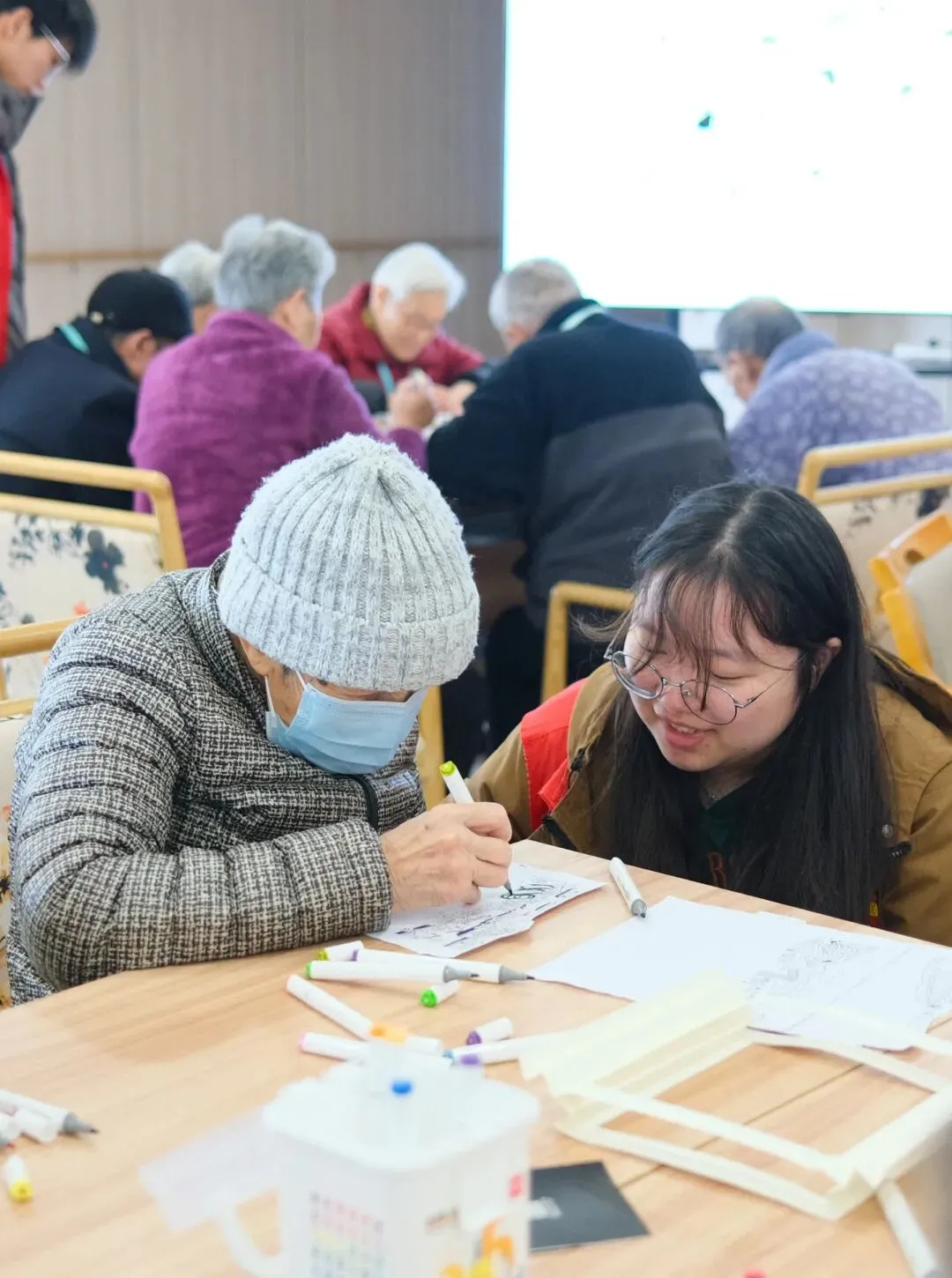 活动现场欢声笑语,温情洋溢,青年学子的朝气与长者的智慧在色彩交织中碰撞出灿烂的火花。