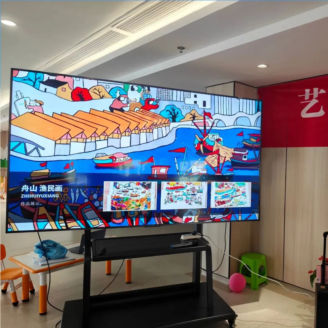 活动尾声,所有合作完成的画作通过数字技术被一一投射到大屏幕上,形成了一条独特的"光影长廊"。每一幅作品都承载着一段愉快的合作记忆,长者们看到自己的作品以动态形式展出,脸上洋溢着自豪与喜悦的笑容。团队将所有作品制作成精美的《“艺暖桑榆”立体画框》并赠予社区与长者,让这份温暖的记忆永久留存。
