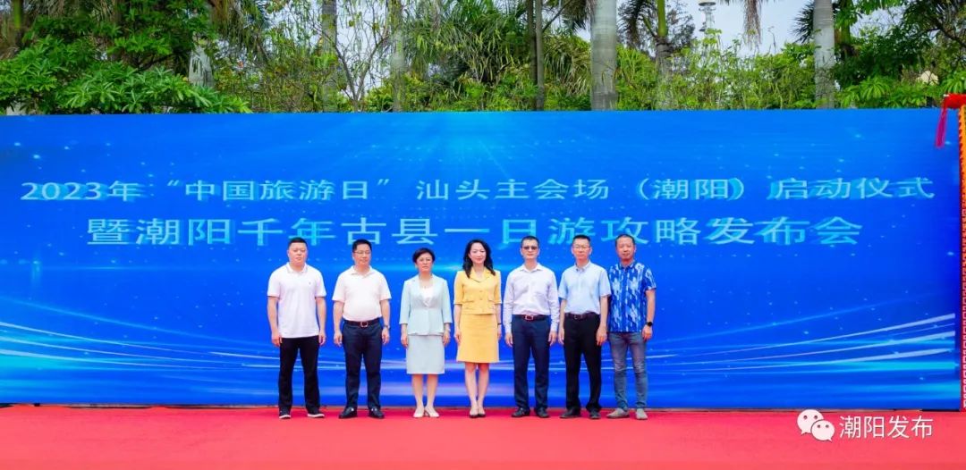 市文化广电旅游体育局副局长黄丽凤,区委常委、宣传部部长谢晓丹,副区长郑楚泽等参加活动,并一起按下启动按钮,谢晓丹宣布2023年“中国旅游日”汕头主会场(潮阳)活动启动。