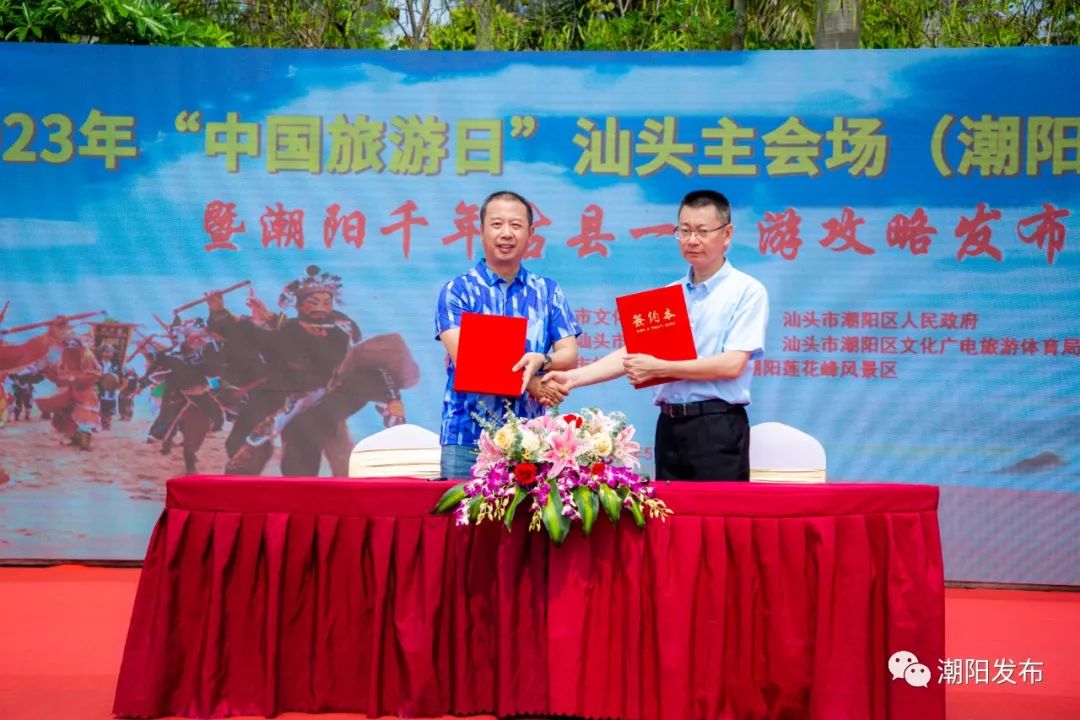 5月19日是第十三个“中国旅游日”,上午,2023年“中国旅游日”汕头主会场(潮阳)启动仪式暨千年古县一日游攻略发布会在海门莲花峰风景区举行。活动以“寻味绿美汕头,畅游千年古县”为主线,进一步引导和促进旅游业恢复发展,深入推动全域旅游。