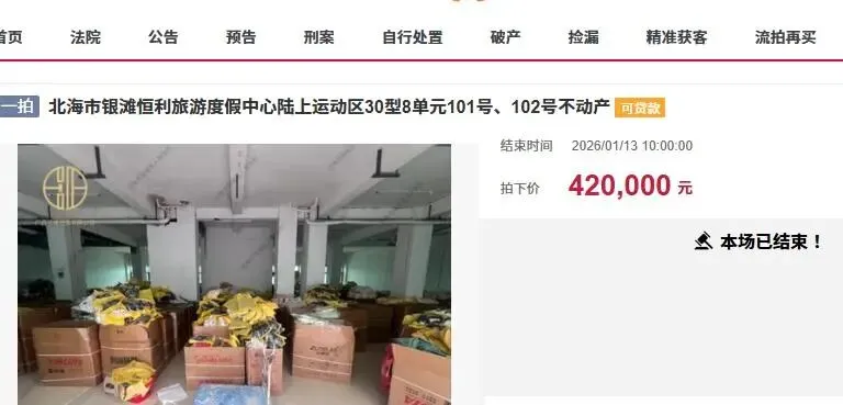 北海市银滩景区旁边一套237平方米房子拍卖,被人42万就拿下