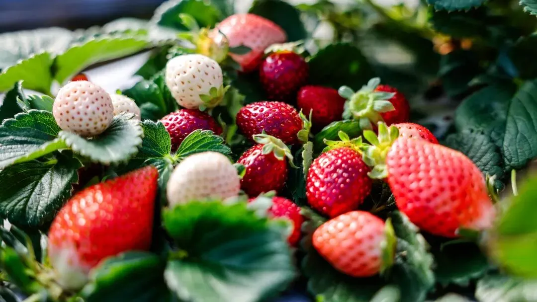 这里的草莓不止是单调的红色,而是一场色彩的盛宴: