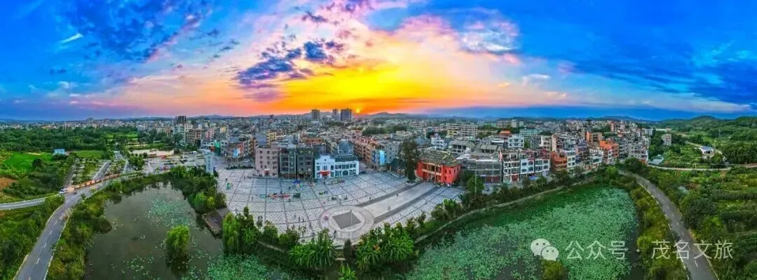 即窦州古城。国家AAAA级旅游景区,全国乡村旅游重点村。古城始建于唐武德四年(公元621年),核心区内坐落着国内罕见的十三所古书院群。元、明、清至民国的古建筑汇集于此,风格从纯正中式到中西合璧,部分建筑依水而立,与光滑的青砖街道一同沉淀着时光。古城之外,现代田园画卷与之交融:连绵的香蕉林、如镜的鱼塘与飘香的果园,共同构成了 “古城、鉴江、现代农业”三位一体的独特景观。