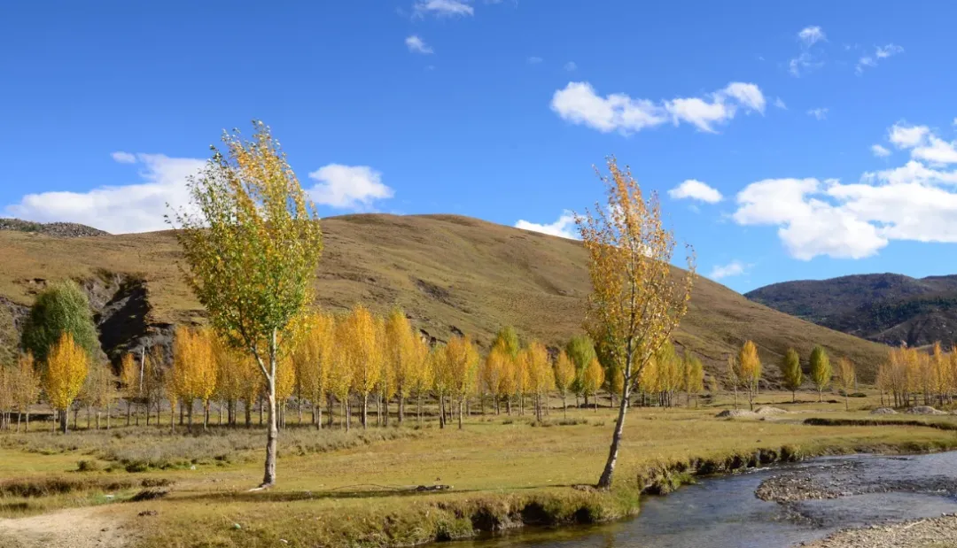 小众点也有,桑堆红草地拍倒影,傍河早上有雾,拔洛乡有一大片杨林,风一吹沙沙响。